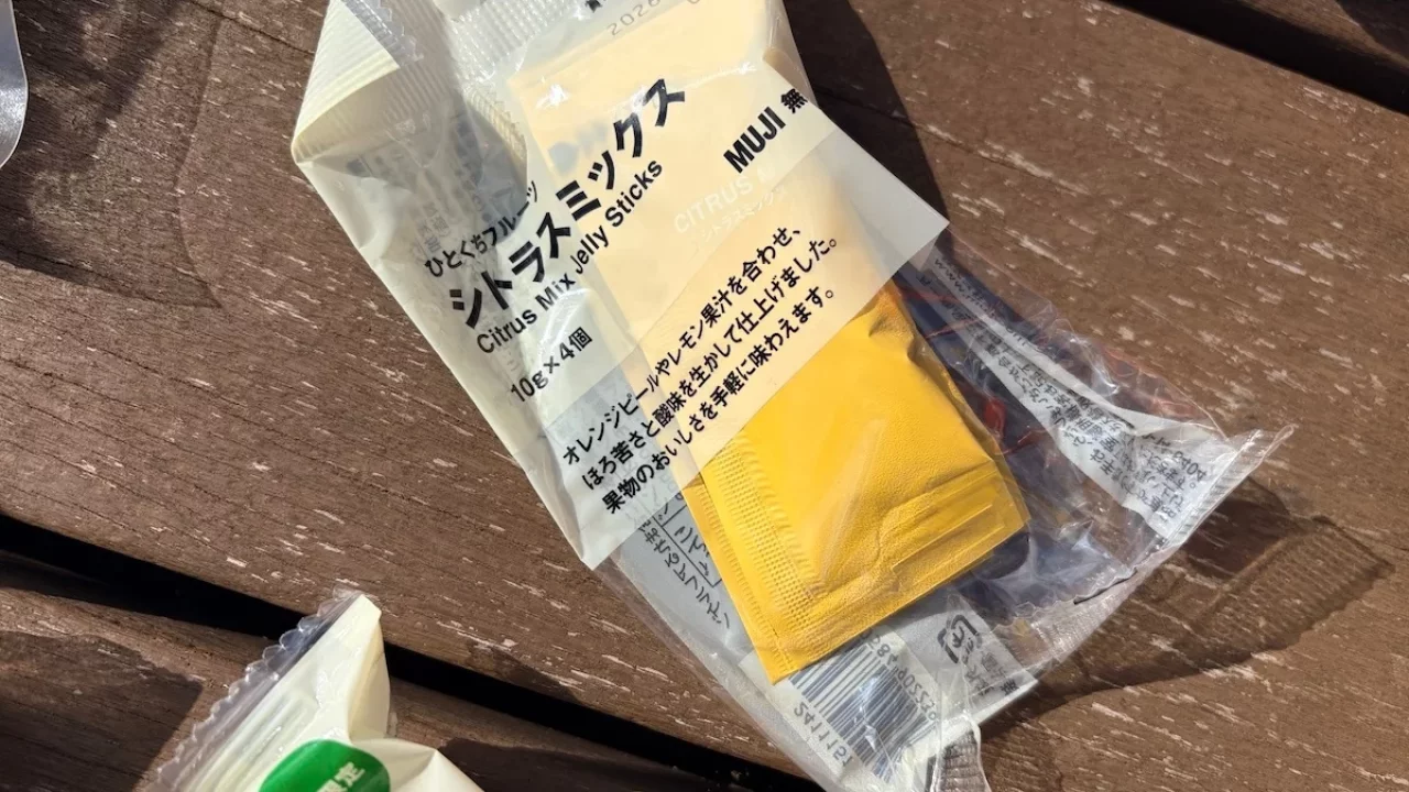 次に紹介するのは「シトラスミックス(一口フルーツ)」。オレンジ、レモンなどを組み合わせた、酸味と甘みのバランスが絶妙のゼリーです。柑橘類の果皮の食感とほどよい苦味、登山中の"甘すぎない糖分補給"として非常に優れています。柑橘の酸味が口の中をリフレッシュし、疲れを感じたときに再び足を前に出す元気をくれます。個包装になっているため登山中でも清潔に食べられます。さらに、唾液の分泌を促す酸味は、乾燥した山の空気の中で喉を潤す効果もあります。甘いものが続いたときの"味変"にもぴったり。行動中の気分転換や、食後のデザート感覚で取り入れるのもおすすめです。爽やかで軽やかな味わいが、登山を楽しくしてくれます。