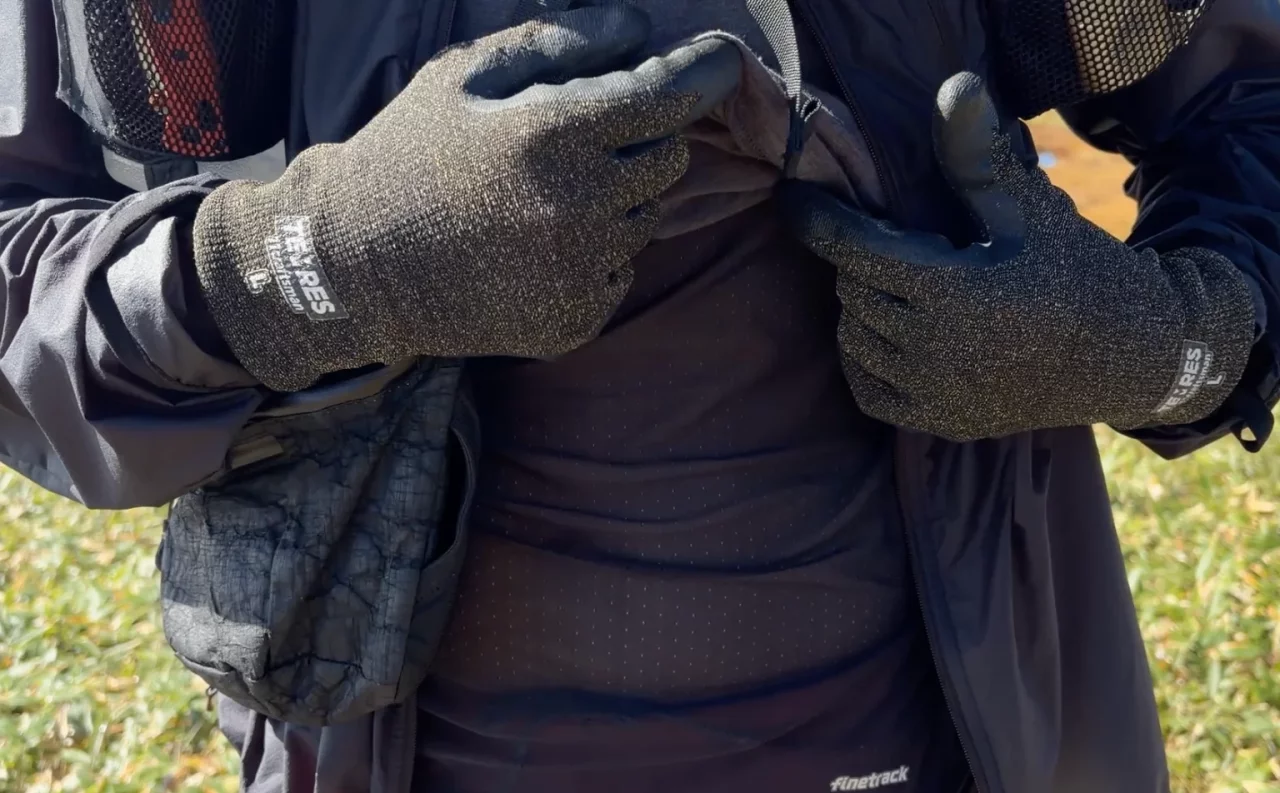 吸湿発熱効果があり、単体でも暖かい。ウィンドシェルグローブ