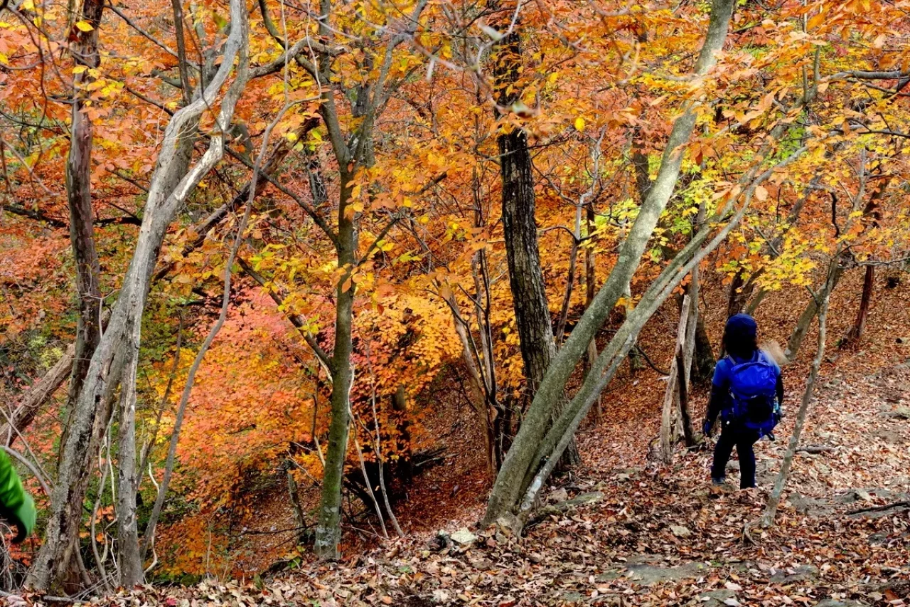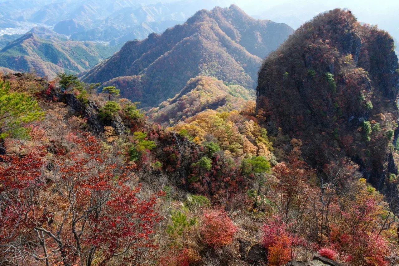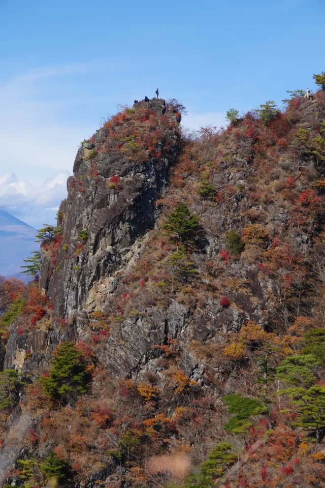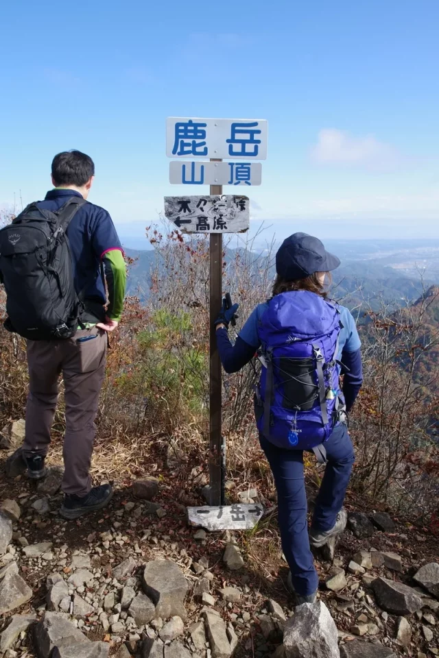 登山ルートは一ノ岳から二ノ岳へと続く周回コースが定番で、痩せ尾根や岩場などスリルも味わえる構成。頂上に立てば、妙義山や浅間山、遠く八ヶ岳まで見渡せる大パノラマが広がり、秋晴れの空と紅葉の山並み、そして岩場のスリルが織りなす体験は登山の醍醐味。コンパクトながら絶景・スリルと緊張感が詰まった鹿岳。感動でゾクゾクできる一日になるはずです。