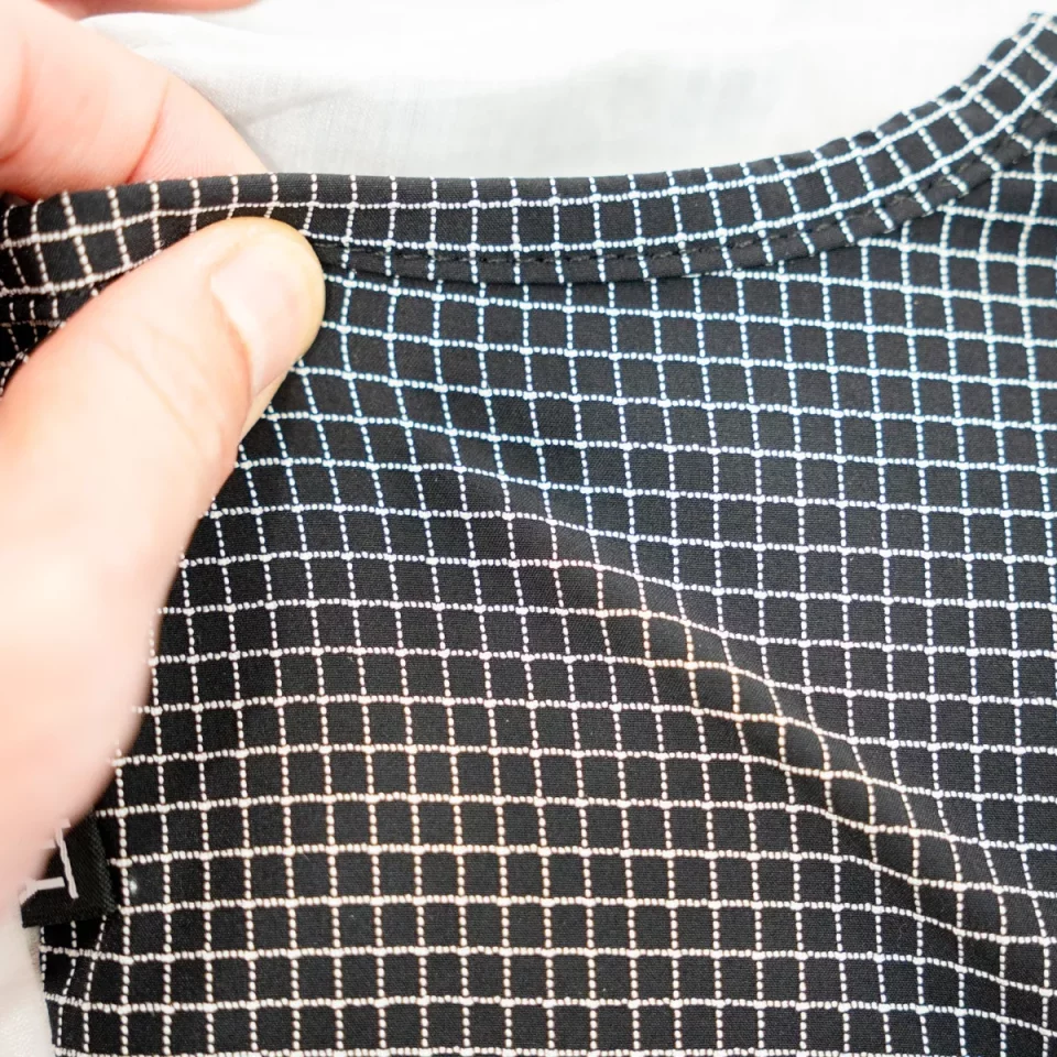 この組み合わせにより、体側は通気性と肌離れ、内部は防水性と耐久性という両方の役割を両立しています。