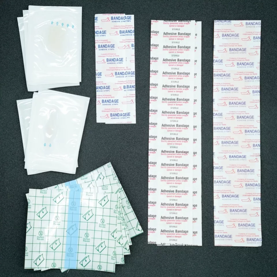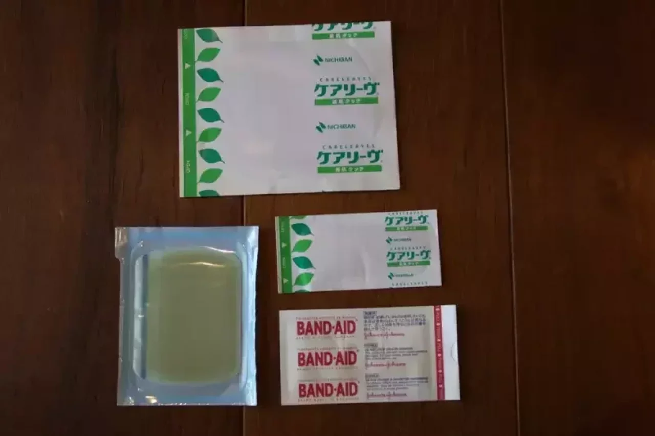 絆創膏は登山で最もよく使われるファーストエイドキットの1つです。各サイズ、防水タイプ、湿潤治療向けタイプなどを用意しておきます。登山の傷は大きいことが多いため、大判サイズは必ず入れておきましょう。