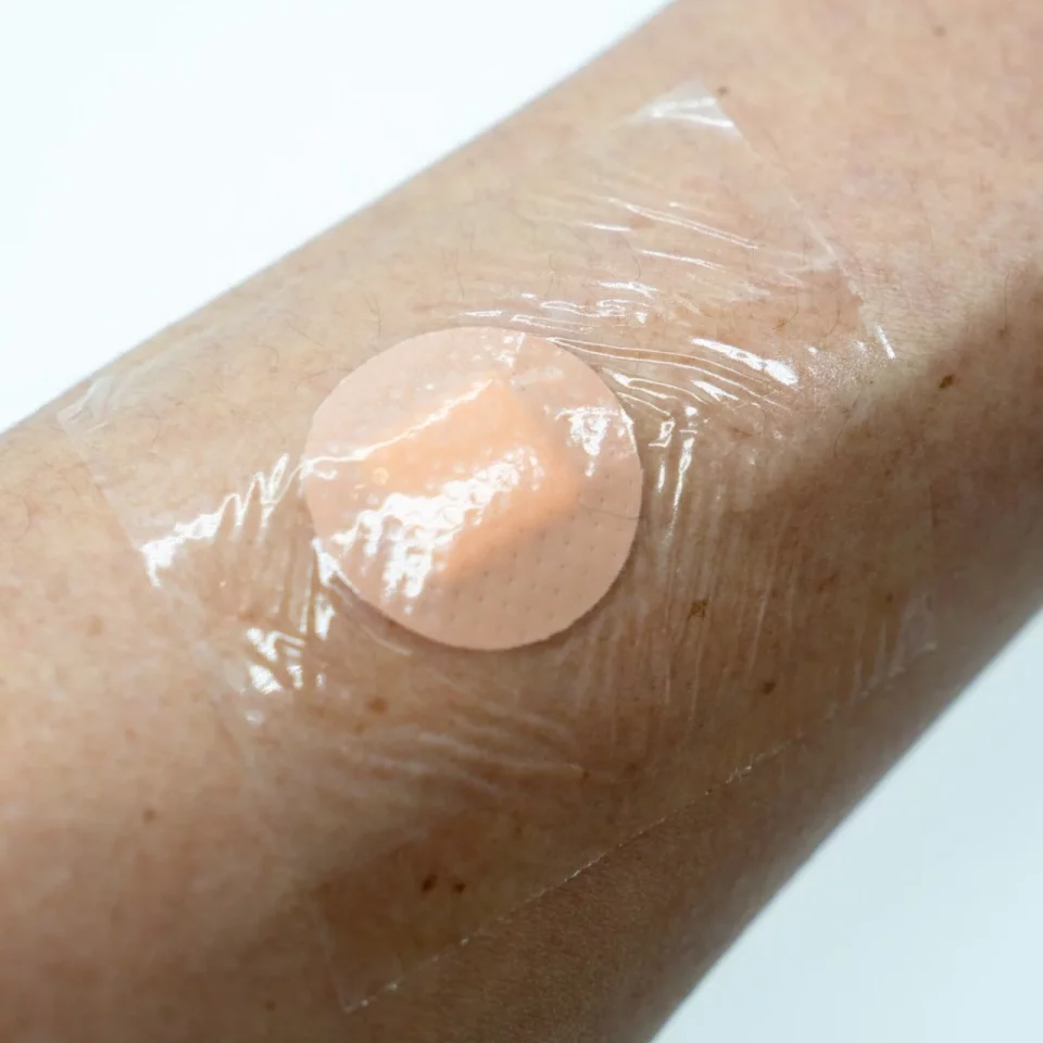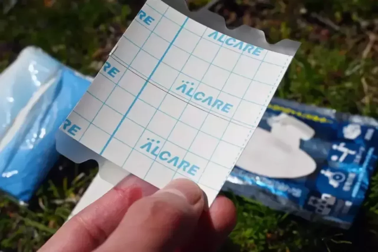 ハイドロコロイド包帯自体が吸収パッドになっているので、これだけで止血できますが、大きな傷を負った時はヘモスタパッドの上からハイドロコロイド包帯を貼った方が安心です。フィルムドレッシング材で密閉する必要がなくなり、移動時もとれにくいです。