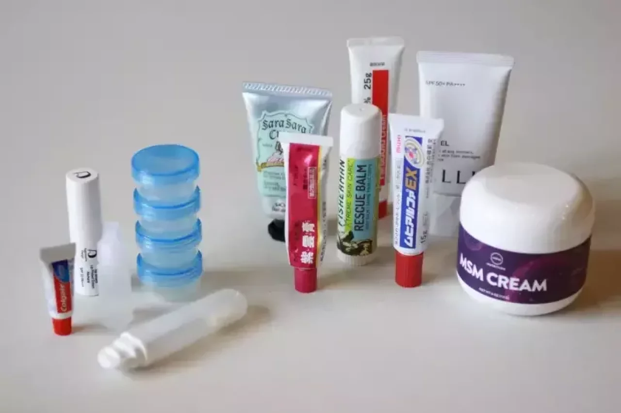 小さなケースに詰め替えて蓋にネームシールを付けておけば、コンパクトにまとまり軽量化できます。