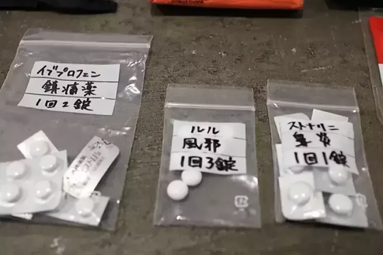 お腹を下しやすい、胃が弱い、花粉症がひどいなど、人によって必要となる内服薬をファーストエイドキットに加えます。