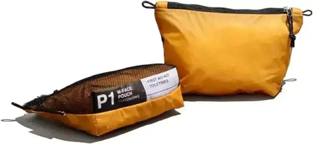 ポーチは全面防水で雨の日でも安心です。ポーチの中はキットの中身をカテゴライズしやすいようメッシュポケットが配置され、見やすくコンパクトに収納できます。