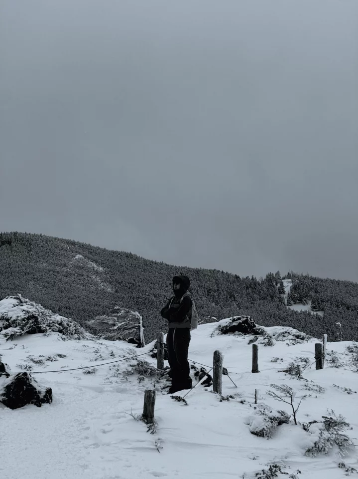 長野に抜ける関越のトンネルを超えた途端、ものすごい曇り空で心配になる。短いコースタイムで手軽に登れるのはいいのだが、樹林帯を抜けた山頂が毎回死ぬほど寒い。雪山初心者の同僚を3人連れて行って、全員に「ここで死ぬのかもしれない」と思わせた過去もある。