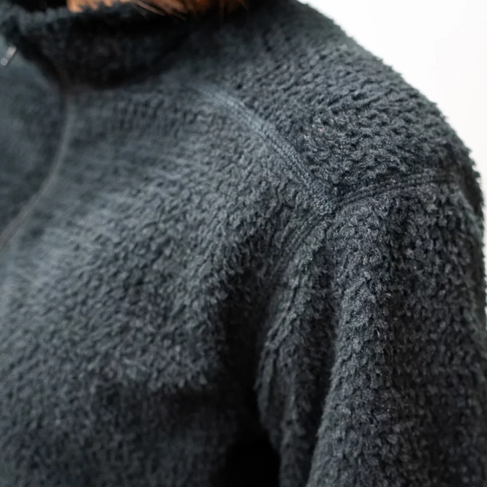 行動中だけではありません。テント泊の際は、程よい通気性と温かさが快適なパジャマ代わりになります。寒い季節の山小屋や室内では、リラックスウェアとしても最適です。 「ジャケットタイプ」を採用したことで、体温調整のための脱ぎ着が非常にスムーズです。また、レイヤリング時のごわつきを防ぐため、ポケットなどの装飾を削ぎ落とし、シンプルさを追求。これにより、重ね着をしても動きやすく、ストレスのない着心地を実現しました。