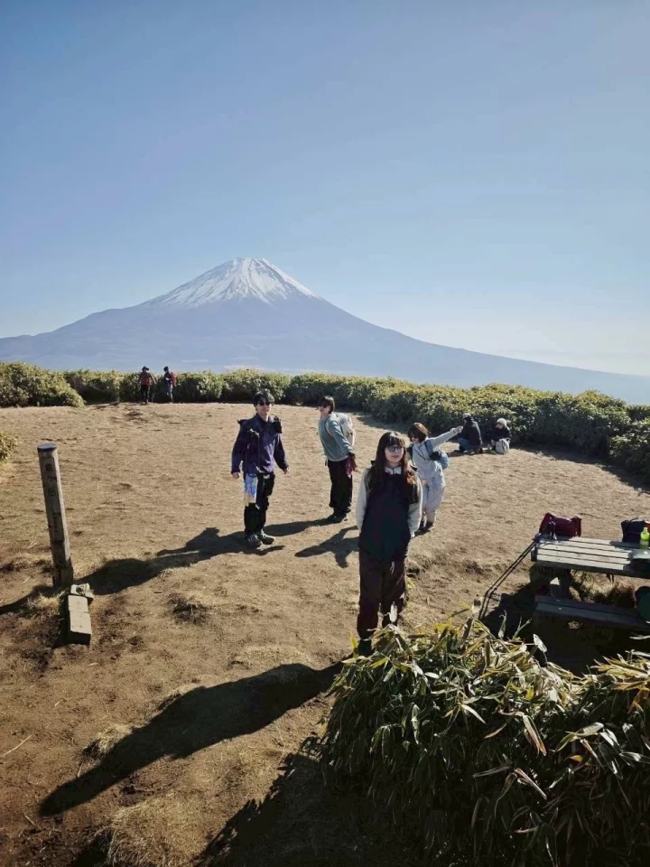 「富士山すごーーーーー!!!」と叫んだ後で、右奥には真っ白い南アルプスが見え「アルプスすごーーーー!!!」と叫ぶ。少し遅れて、みんなが「すごーーーー!!」と叫ぶ。短い距離で順番にリアクションがこだまする。