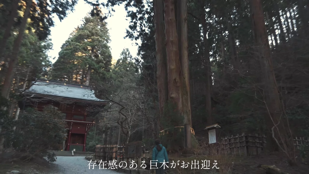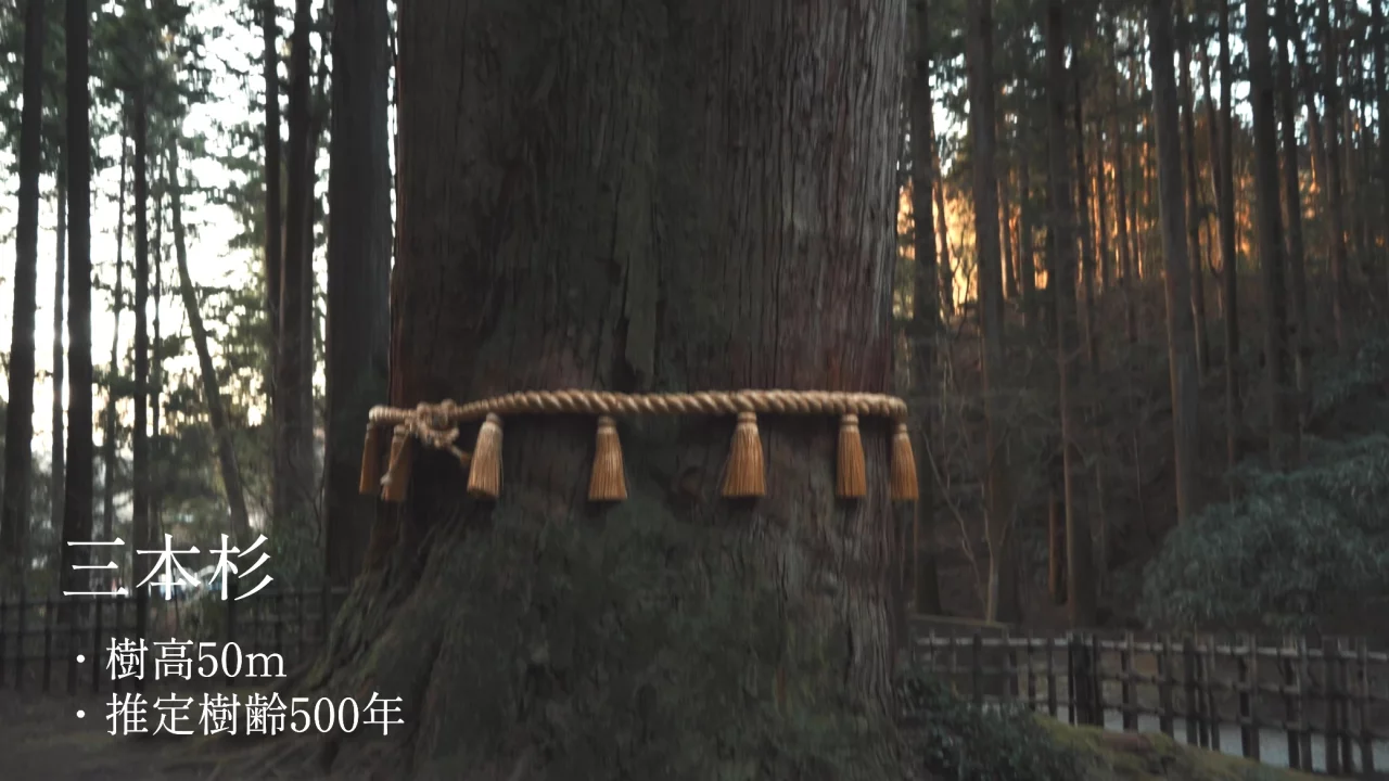 中でも境内に立つ「三本杉」は圧倒的な存在感で、