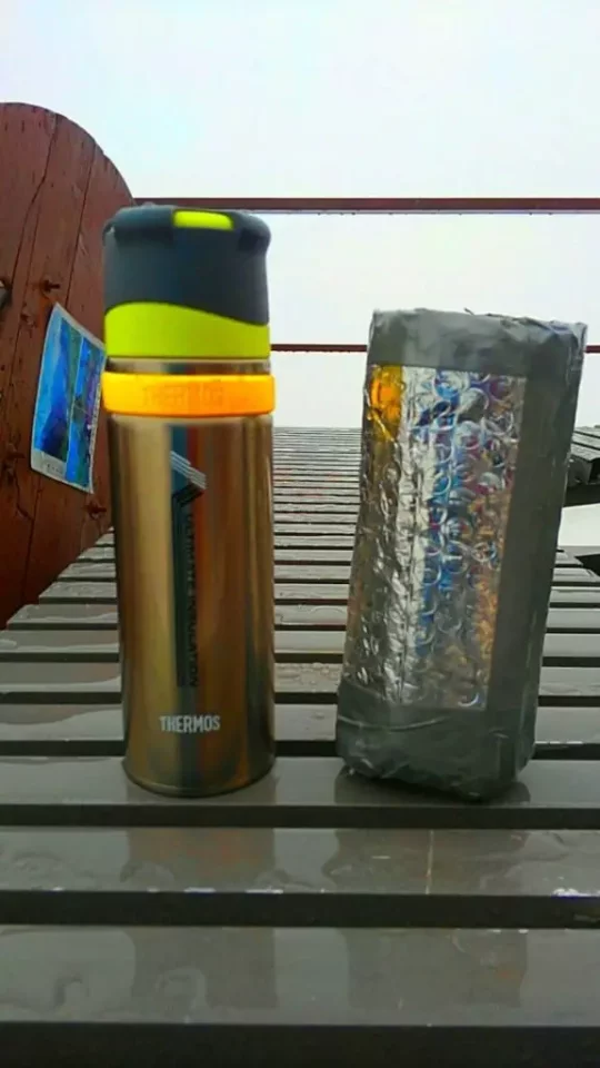 私の友人に、雪山のアルパインクライミングの経験が豊富で、海外の高山も経験している方がいます。その方に『私の家を作った時に使った断熱材』と頂いたシートで、これを使ってテルモスのカバーを作ると、水筒の保温効果を高められるよ、と教えてもらいました。その方が言うくらいだから、きっと効果があるんだろうと使い続けています。