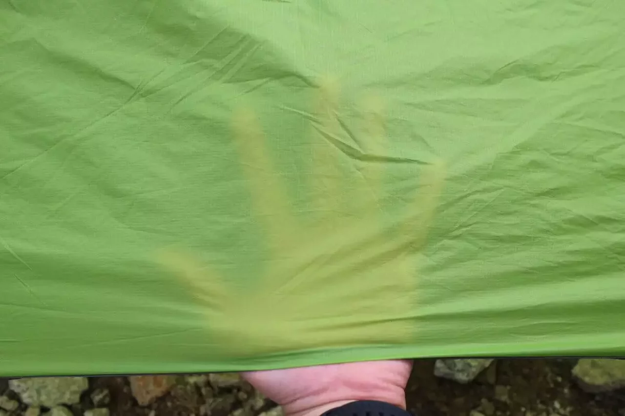 生地が薄いことによるメリットは軽いというところにつきるのですが、デメリットはやっぱり雨の侵入です。北アルプスの縦走などで、物凄い雨に見舞われると、雨の浸入の懸念が付きまといますが、撥水処理を施すことで軽減されると思っています。