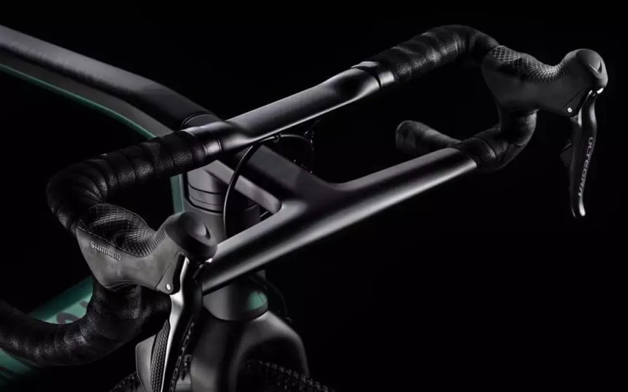 「伝統的な」ドロップハンドルとステムの組み合わせは、実は必要とされる機能とは⽭盾した構造になっている、そのことが開発のヒントとなりました。その⽭盾とはすなわち、ステムとハンドルが連結されるために最も剛性が⾼いステムクランプ部分のすぐ横、上ハンドル部に必要とされるのは振動吸収⼒であること。そしてクランプ部から最も離れているために最も振動吸収⼒を持つ(たわみやすい)下ハンドル部に必要とされる機能は、スプリントにおける⾼剛性、そして下りの際のダイレクトなハンドリングであることです。