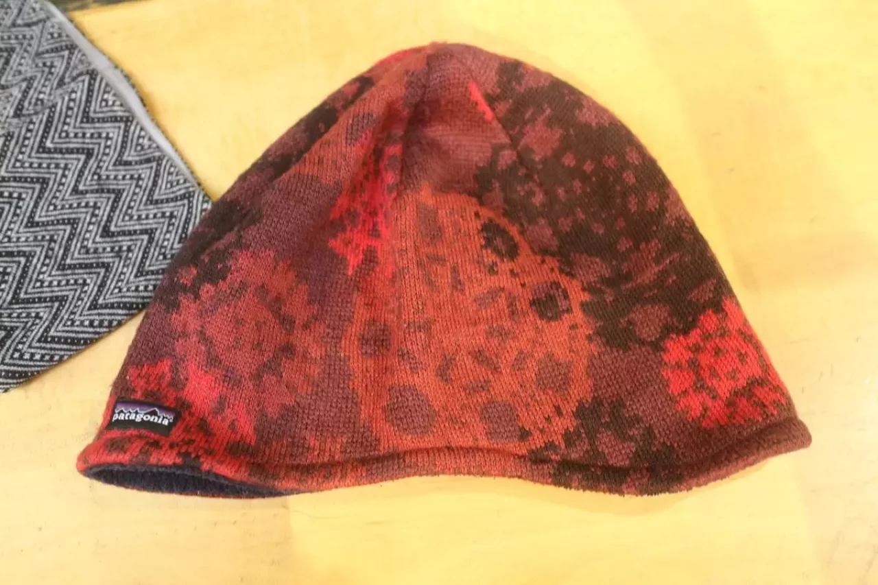 パタゴニアのニット帽とは、10年ぐらい一緒に山で過ごしているのですが、私の持っている形はもう販売されていません。このニット帽は耳が隠れるようになっているところが凄くよいのですが、今はその形のものがないんです。是非復活してもらいですね。
