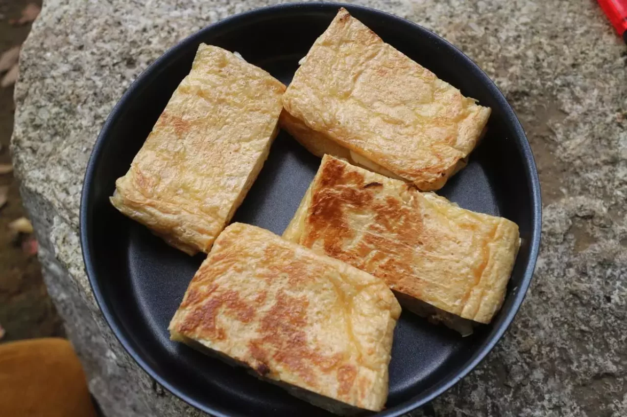 これに更にタンパク質が豊富なチーズと、電解質が豊富な味噌を挟んで焼いて頂く山ごはん。非常に理にかなっているので、おすすめ!