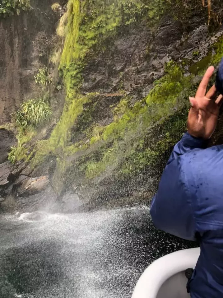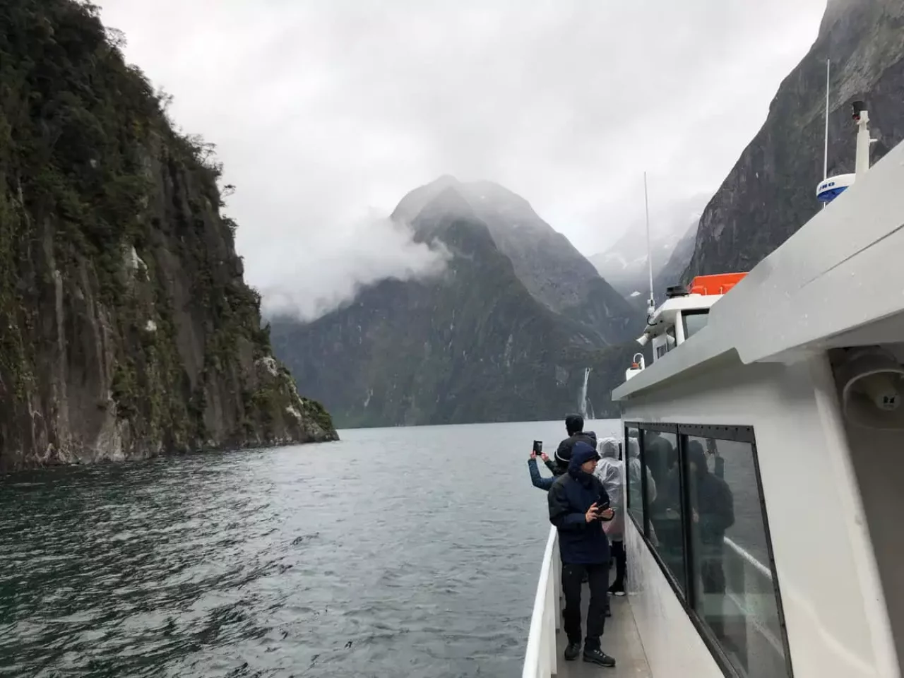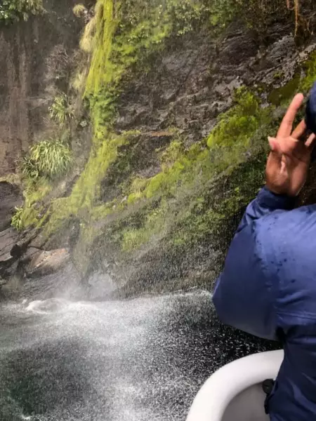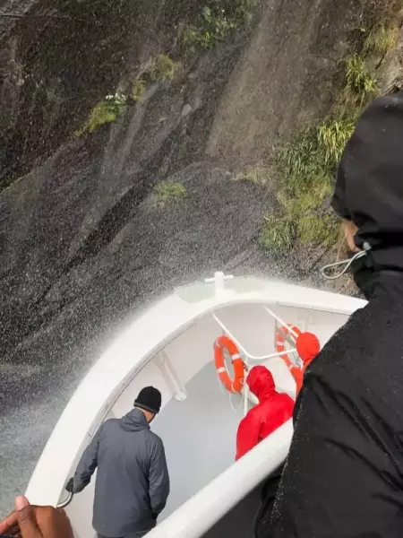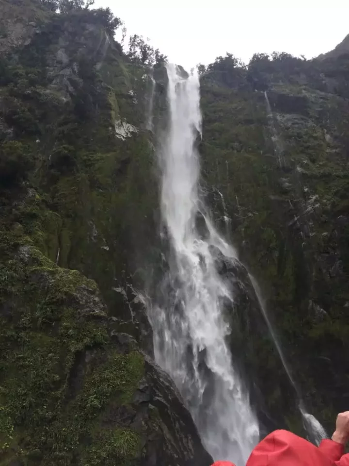 ミルフォード・サウンドは、1年の3分の2は雨が降るという。僕らが訪れたこの日も雨で、これによってカスケードと呼ばれる一時的な滝が形成されるという。至る所に滝が見え、この滝を求めて船は進む。