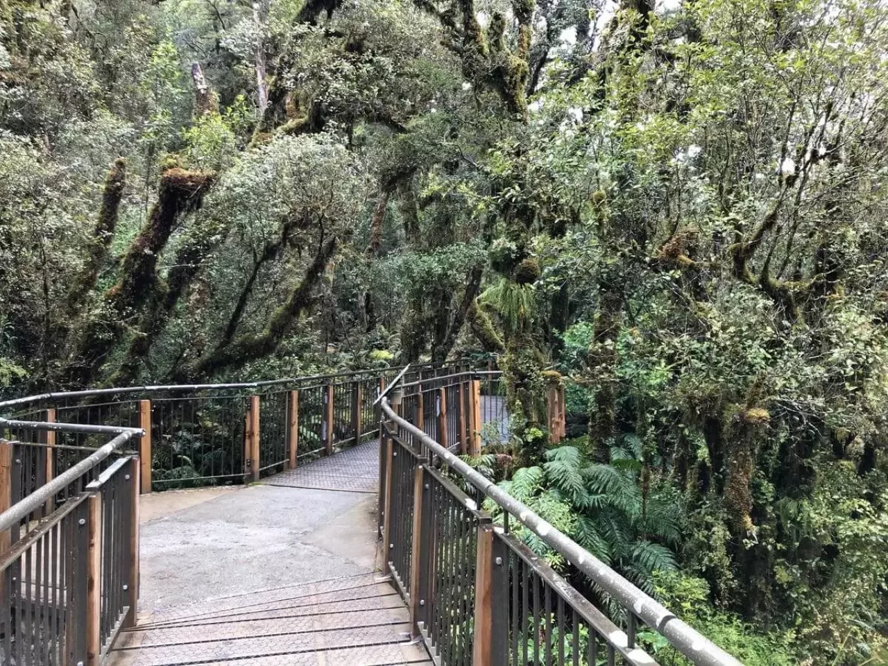 こうして、ミルフォードサウンドを満喫した僕らは、天気も回復傾向だったので、帰り途中で楽しめるスポットに立ち寄ることに。The Chasm Viewing Bridge、Mirror Lakes、Eglinton Flats。