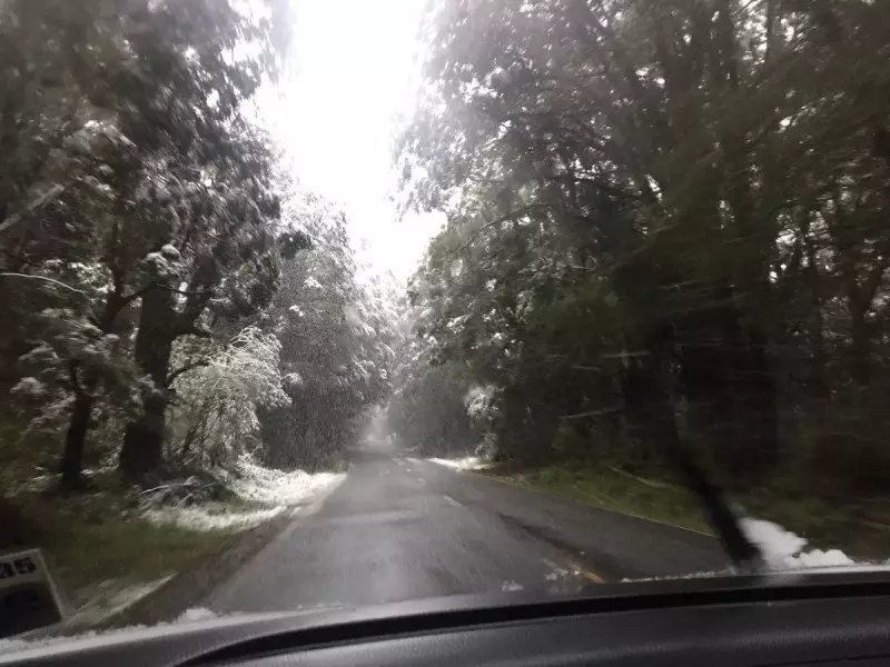 すると前方から車が、更に車が、そして雪から雨へと…。おお神様~と胸をなでおろす。
