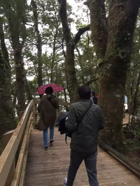 ミルフォードサウンドには多くの車があり、この近くにある宿泊施設に泊まっている組だろう。パーキングに車を停めて、小雨の中、徒歩10分。目的のクルーズ会社の窓口へと向かう。