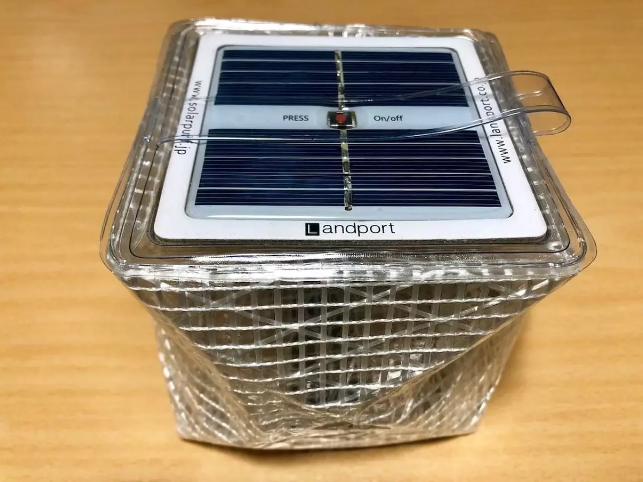 重さは約75gの超軽量LEDランタンで、収納時はペタンコ。キューブ状のところは、破れにくい軽量素材で知られるヨットの「セイル生地」を採用。