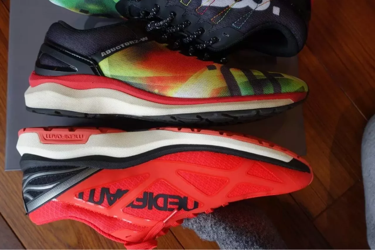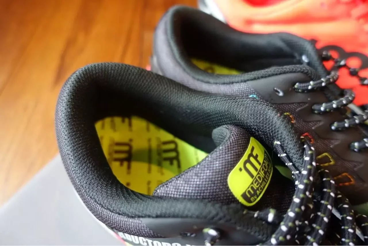 「MEDIFOAM」はメディカルとフォーム(発泡体)を組み合わせた名称が、商品名にもなっています。日本の会社「アキレス」が開発したこの素材をミッドソールに使っており、日本人の足、日本のアスファルトのことを考え抜いた作りだと感動します。