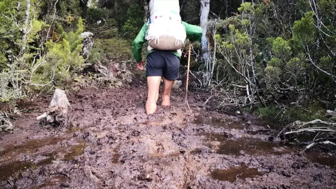 ちなみにフットウェアは非防水をおすすめします。非防水は防水靴よりも乾きが速いためです。基本的に川を渡る日が多く泥のなかや湿地帯といったウェットな環境が多いので靴下や靴が乾いている日はあまりないので、どちらかというと乾きの速い非防水の方がおすすめです。