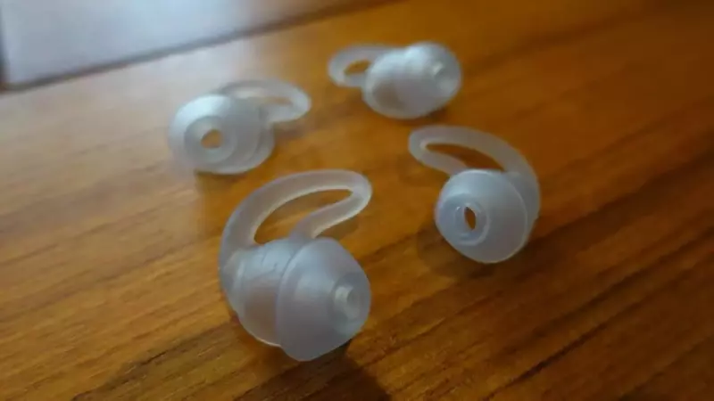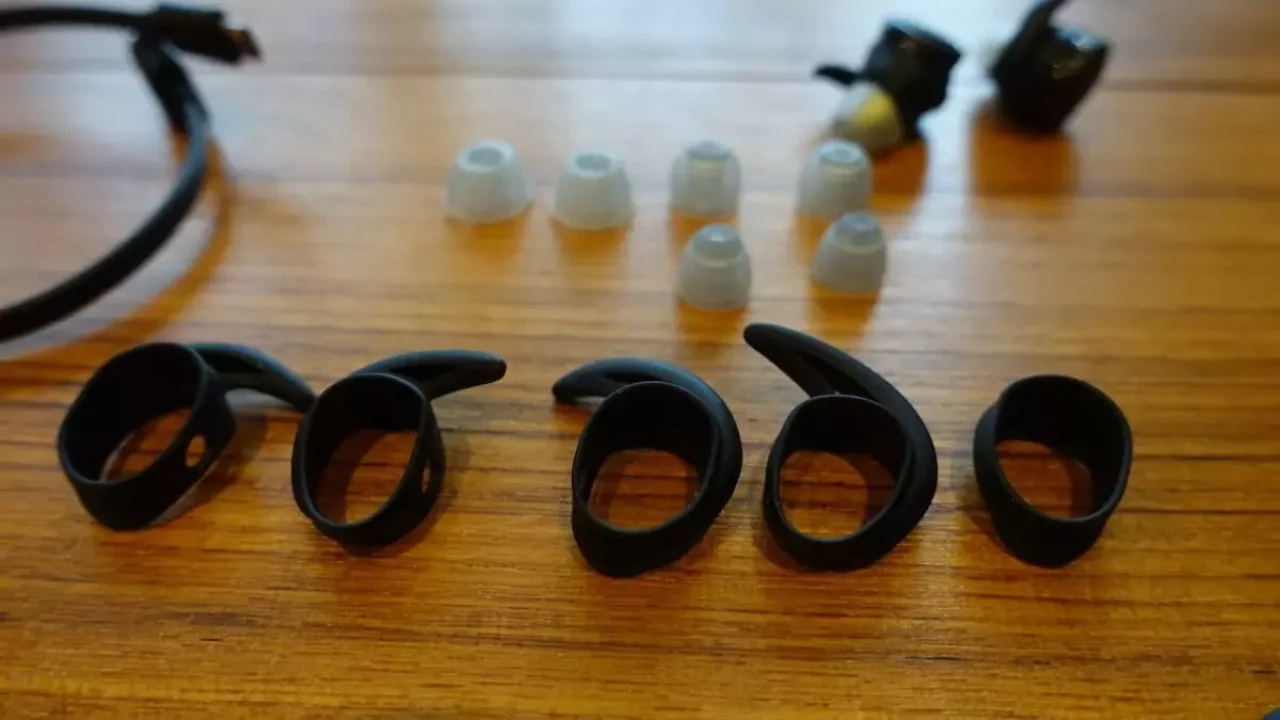 装着感がいい理由の1つに、耳にフィットするイヤーチップとフィンのセットが挙げられます。右耳と左耳の穴の大きさが若干違っていることに気付いたのも、このセットのおかげでした。耳の穴に入るキットと、耳から落ちないように穴の周りにフィットするキットの組み合わせを自分なりにカスタマイズして着用体験を体験してベストなフィット感を作り出せます。