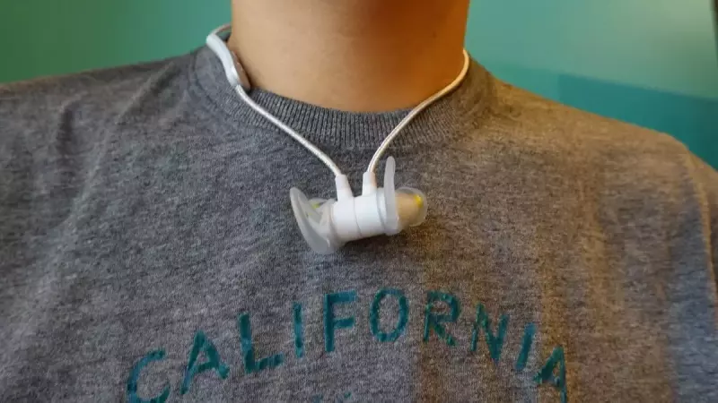 コードがあるからといって、動きを妨げないよう工夫された技術が随所に施されています。またコードがあることの良さもあります。その1つが音楽を聴いていない時に首からぶら下げておけるというところです。しかも磁気スナップロックがついているので、イヤホン同士が磁気接続でくっつきます。これにより落っことす心配が軽減されます。バッテリー節約にもなり、音楽が自動的に一時停止してくれます。(スゴイ!)