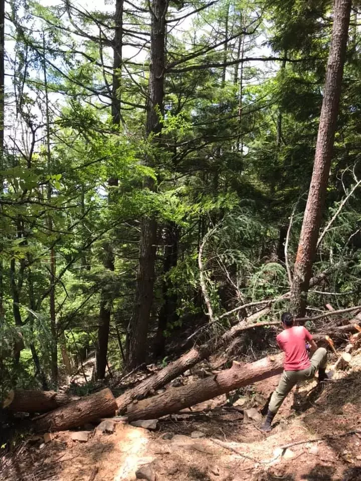 富士見平小屋から金峰山へ向かう登山道を整備中ですが、まだ何ヶ所か倒木があります。通行出来ない所はありません。良い山行を〜☆