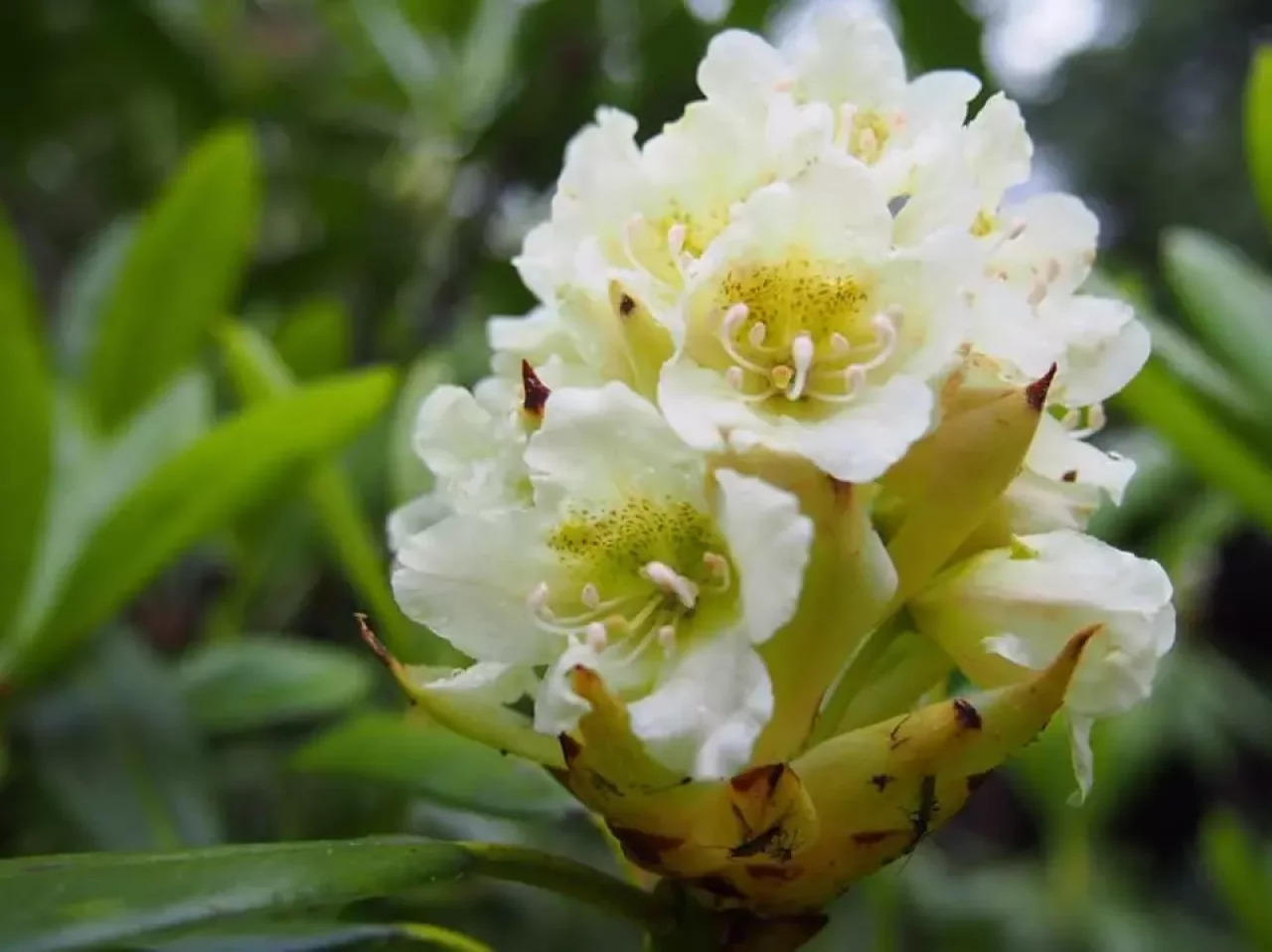 本沢温泉中庭のシャクナゲが一輪開きました!他の蕾も膨らみはじめています。