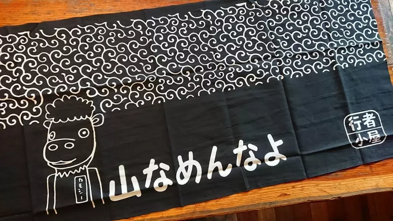 行者小屋番長カモシーの新しいグッズが登場です♪山なめんなよ・カモシー手ぬぐいを作っちゃいました。笑