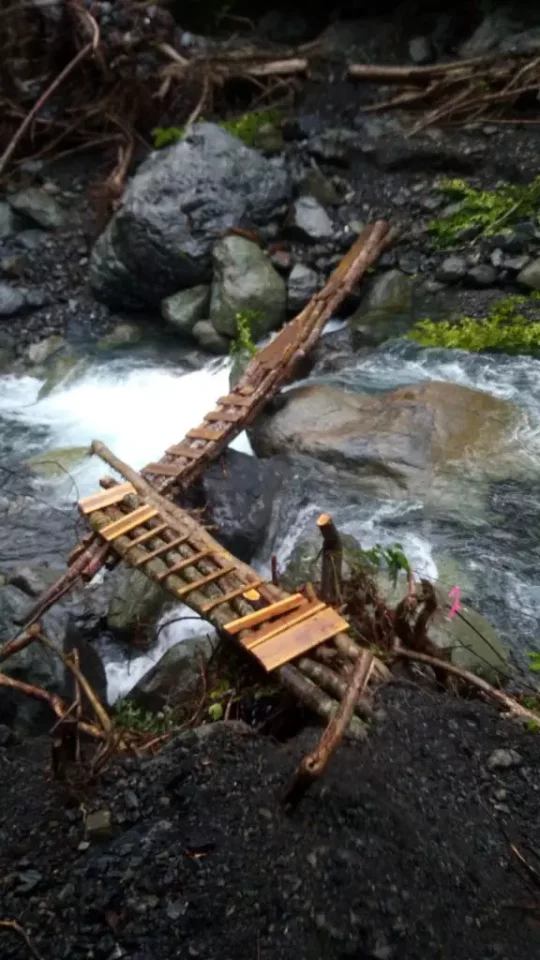 茶臼小屋からお知らせ。先日 補修した三号橋が 地元山岳会に手直ししていただいたようです。有難いことです。