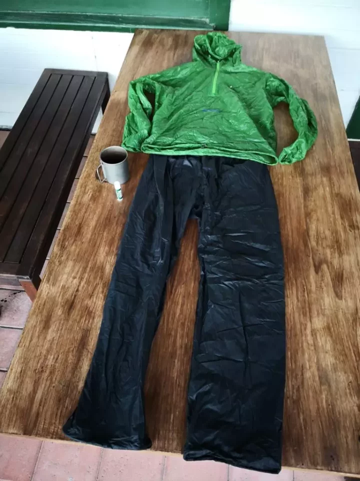 「レインウェアがあればウインドブレイカーは不要論」もありますが、自分の体質的にはウインドブレイカーは快適に歩ける最良アイテムのひとつなので持っていきました。アノラックタイプはジッパーが短くその分軽くなりますので好きなアイテムです。