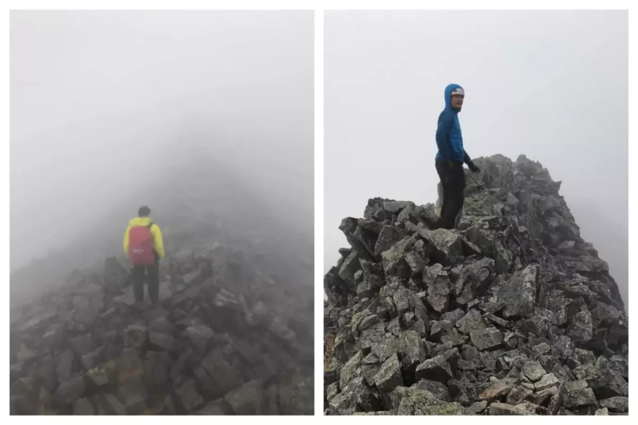 上河内岳を下り、茶臼小屋に向かう稜線をみて「ガスった状況含めて奥穂高からジャンダルムに向かう稜線に似てる」とサヤカさん。僕は行ったことがないので解らなかったが、恐ろしい危険なポイントがありそうな予感に包み込まれたことは確かだった。確かに写真を並べてみると納得がいく。(上記の写真下がジャンダルムに向かう稜線の写真)