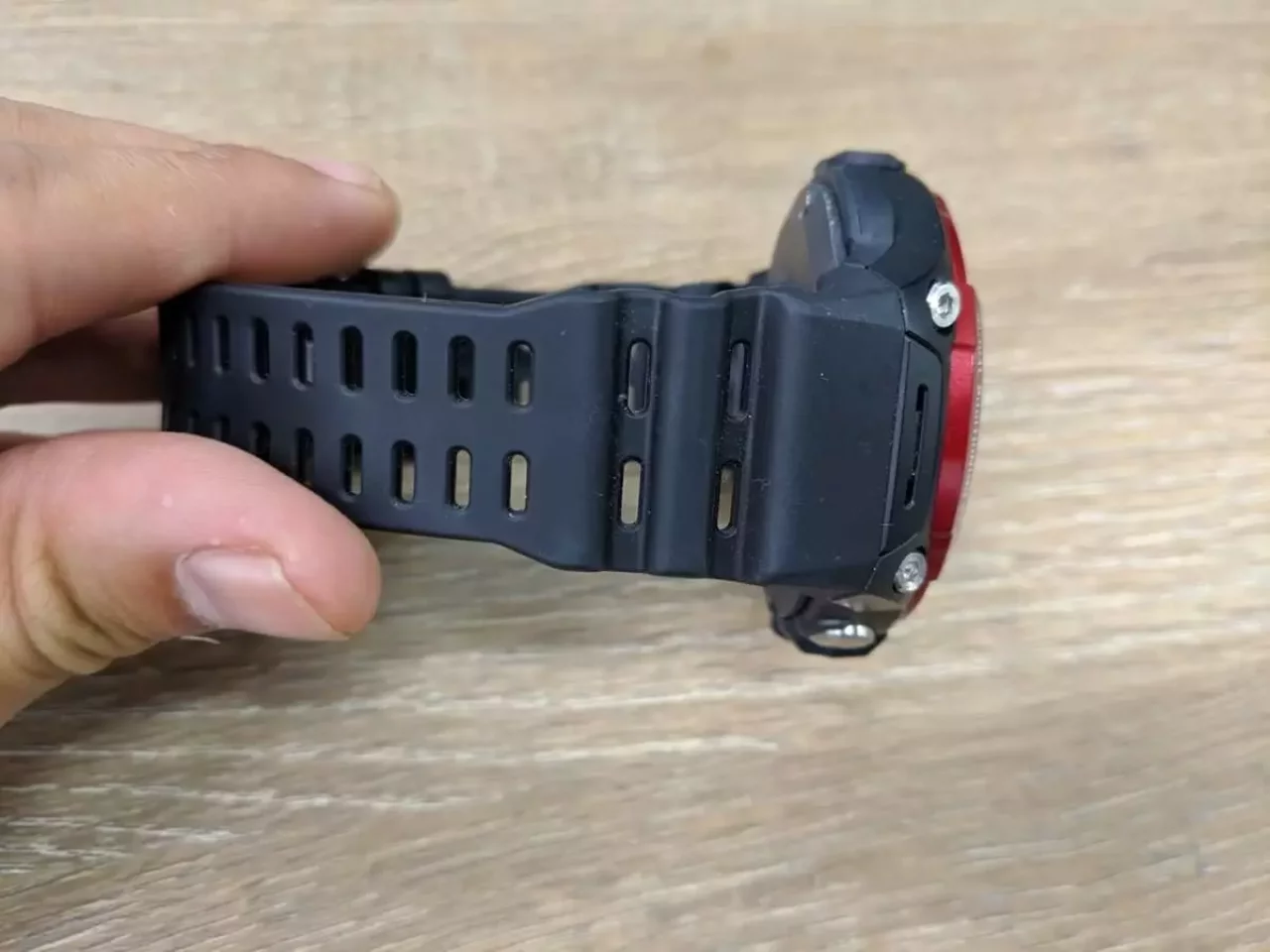 カラーは2色展開で赤と黒となっています。バンドはダブルのピンで固定をし、アジャスト感のあるソフトウレタンバンドで作られており、スポーティーな印象のなかに高級感を感じるデザインに仕上がっています。