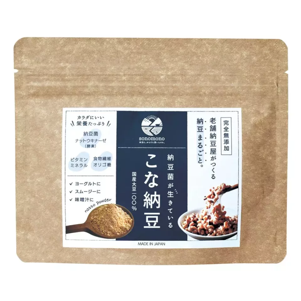 - 「こな納豆」は、ナットウキナーゼをはじめ、食物繊維、大豆オリゴ糖、ビタミン、ミネラル、ポリアミン、ポリグルタミン酸など、大豆の豊富な栄養はもちろん、納豆だけが持つ有用成分まで全部摂れます。どんなお料理にも使えますのでお好みでアレンジしてご賞味ください。完全無添加ですのでお子様やシニアにもおすすめです。ヨーグルトやアイスクリーム、お味噌汁、カレー、パスタなど、和洋中問わずいつもの食事にプラスするだけでOK!手軽においしく納豆の栄養を摂って、ご家族の健康サポートにお役立てください。