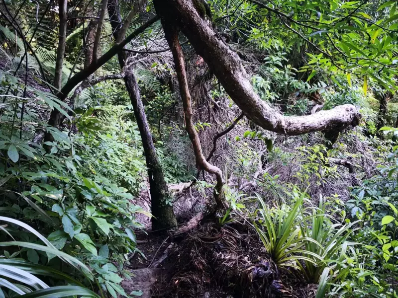 テアラロアのトレイル上には迷いやすい箇所がいくつかあります。大体うっそうとした森です。何枚か「どこがトレイルやねん」という写真があるのでご覧ください。