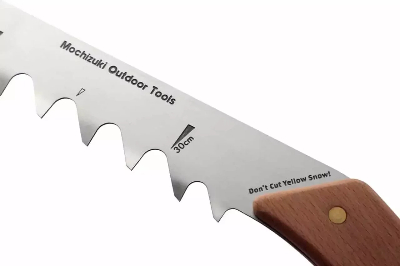1983年の発売以来、数々の登山隊、冒険家、スキーヤーの雪上生活を支えてきた日本製の雪用のこぎり、モチヅキスノーソー。