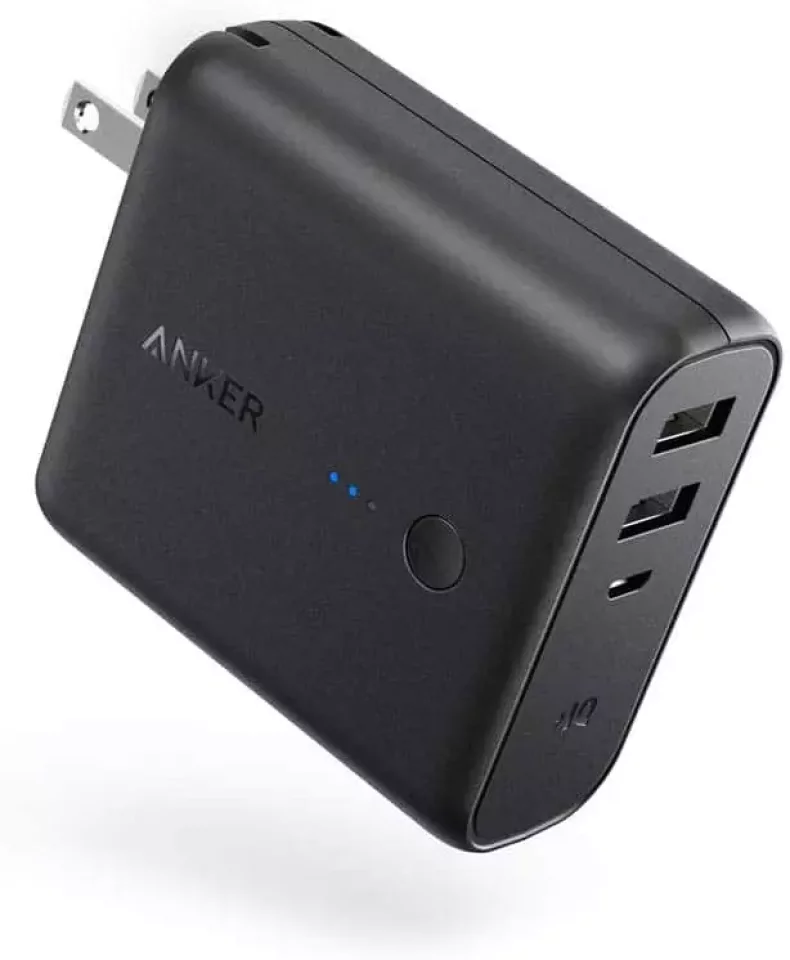 充電器とモバイルバッテリーが一緒になっていて持ち運びもしやすいアンカーのモバイルバッテリーです。コンセントも折り畳み式で、バックに入れても邪魔にならない設計なので、旅行にも登山にも重宝するアイテムです。2台のUSBポート付きなので、パソコンとスマートフォン一緒に充電ができたり、家族と一緒に充電できたりと、色々なシーンでの活用が魅力的です。
