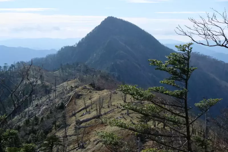 たどり着いた弥山から見る八経ヶ岳の山容が美しい。