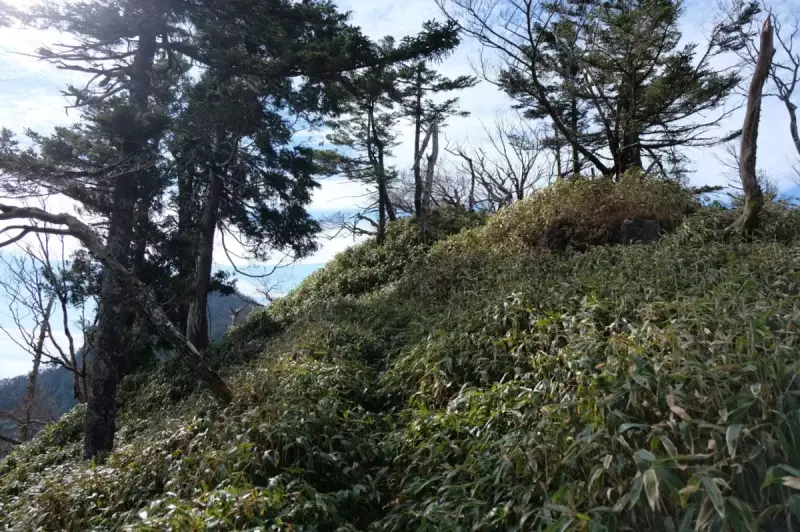 孔雀岳をこえると、急に笹が濃くなってくる。