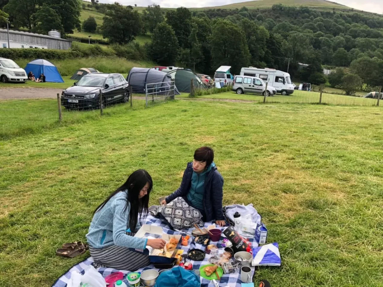 ブリストルで友人のいとこ母娘と合流し、車でブレコンビーコンズ国立公園に向かった。二人ともはじめて訪れるとのことで、楽しみにしていた。約1週間ぶりの再会なのだけれど、スコットランドの旅の話で会話が尽きない。 予約してくれたキャンプ場は、空が広く感じられる快適なオートキャンプ場で着いた頃には沢山テントがあったけれど、なぜか混雑感がない。それぞれ芝生の上に車をとめて、横にテントを張っている。