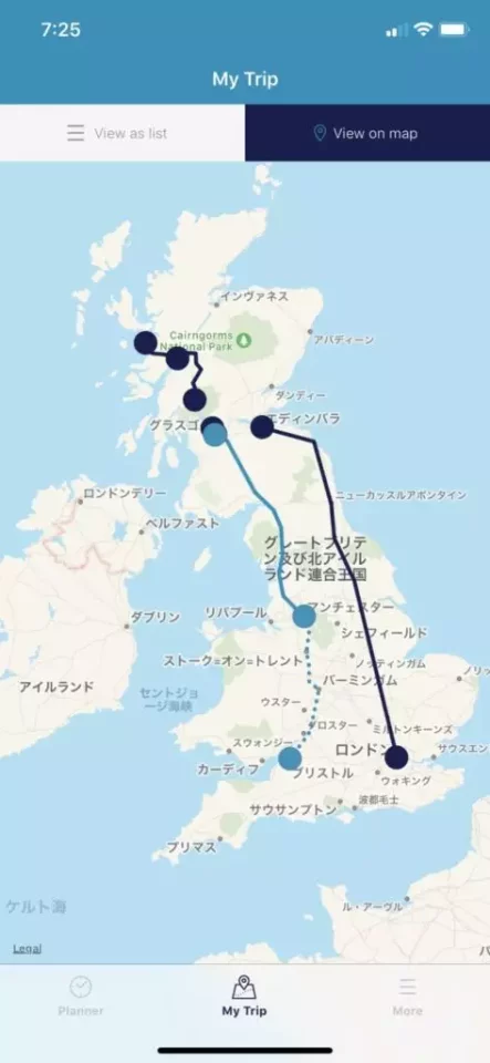 この後はウェールズとの境に近いブリストルを目指すことになっていたので、レイルパスを使ってまた約3時間の電車旅。今回「Rail Planner」というレイルアプリを使ったのだけど、My Tripが保存できたり、地図で確認できたりととても便利だった。
