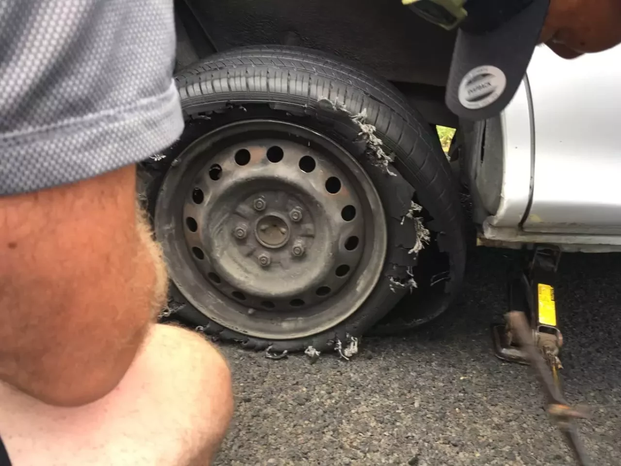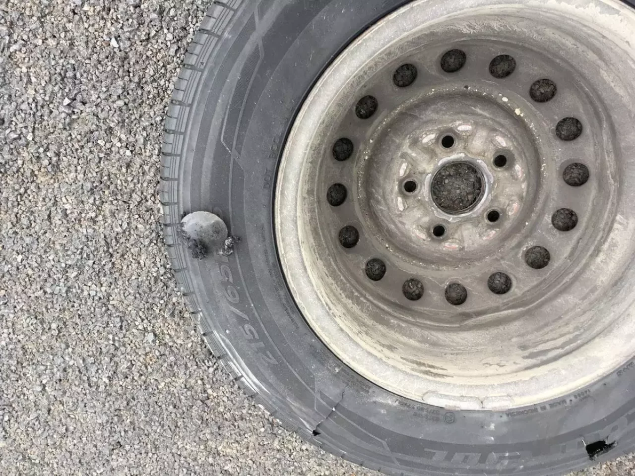 まずパンクしたタイヤには、自転車のパンクを治すようなテープ?で応急処置した、以前パンクをしたタイヤを使用しており、タイヤの修理屋さんに言わせれば非常に悪質な治し方だと言う。