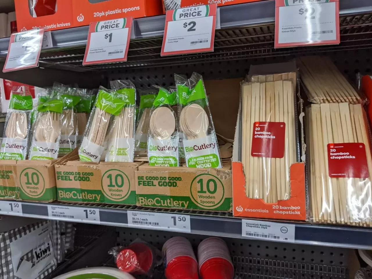 スーパーへいくとストローやカトラリーにプラスティック製のものが少なく竹で作られたものが目につく。