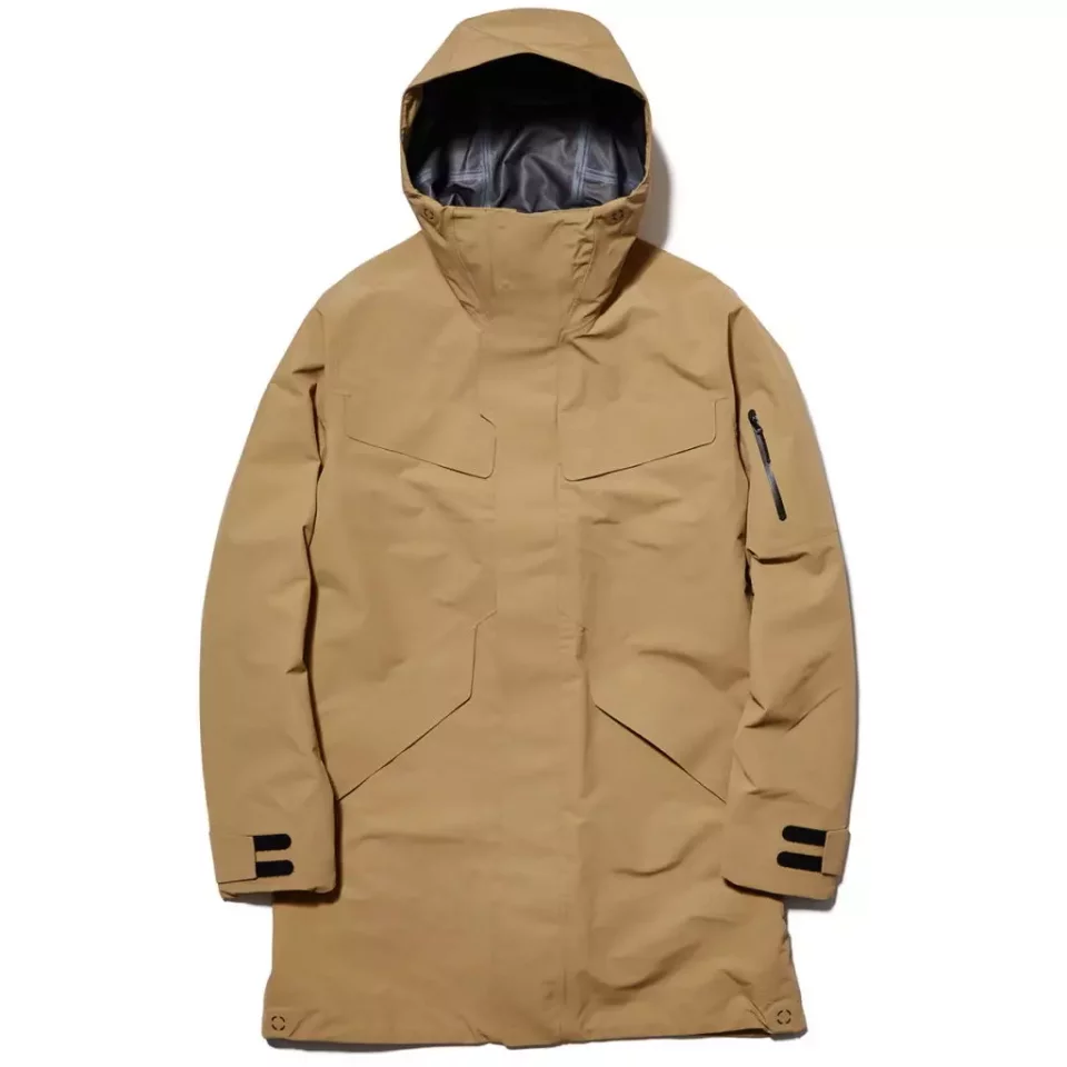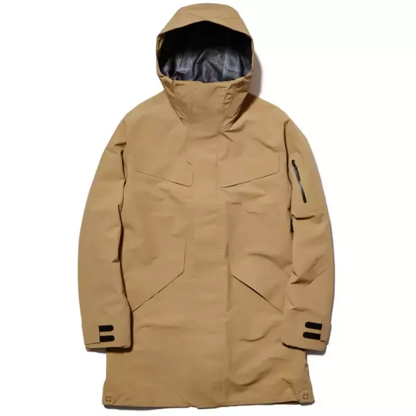 防水透湿性に優れたGORE-TEX ®PRODUCTSの3層生地を使用したコート。ハリのあるコットンライクな風合いの生地で、日常的に着用しやすい雰囲気に仕上げています。フードコードのアジャストシステムや、左腕の止水ファスナーを使用したポケットなど、スキーウエアで培った技術や仕様を活用。快適さとクリーンなデザイン性を融合させています。フードのバタつきを軽減するフードのマグネット仕様、袖口はレーザー裁断と接着の技術を採用したアジャスト仕様。腰と胸ポケットのフラップ部分にもマグネットボタンを採用し、美しい形状を保ちながら使い勝手の良さも実現しました。フィールドにも対応できる機能性をライフスタイルウエアに落とし込んだ、オールシーズン活躍する1着です。