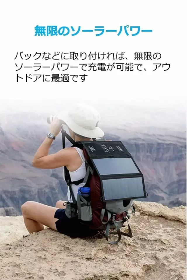 ソーラーチャージャー部門でベストセラーのAnker 8W ソーラーチャージャーのアップグレードモデルです。最大出力が2.1Aにアップし、デザインも新しくなりました。Anker独自技術PowerIQテクノロジーにより、最大2.1Aの高出力が可能です(日光に寄って充電量は左右されます)。エネルギー変換効率は21.5%-23.5%と高く、2つの機器を充電するのに十分な出力を実現しました。コンパクトサイズ(折り畳み時28×16cm,展開時48×28cm)で、各角に空いてある鉄製の穴はリュックサックや木、テントに取り付けるのに便利です。軽量(約350g)でとても薄い(折畳時1.8cm、展開時0.5cm)ので、長旅のお供にも最適です。