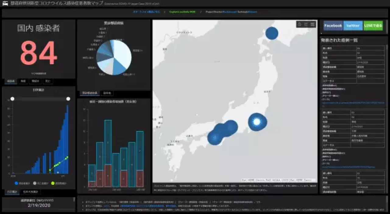 ダッシュボードは、中国の州レベル、米国、オーストラリア、およびカナダの都市レベル、およびそれ以外の国レベルでケースを報告するもので、もちろん日本も細かく確認できます。