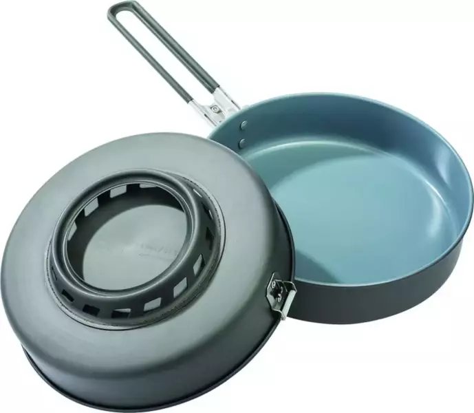 ウィンドバーナーストーブシステム専用のスキレットです。素材となる硬質アルミには、高品質なセラミックコーティングを施しました。セラミックコーティングは環境に優しく、他のコーティングに比べて丈夫な表面をもつため、長時間に渡ってこびりつきを防ぎます。パンケーキや炒め物などの調理に最適です。