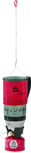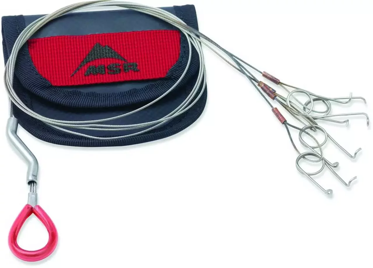 高所登山や厳冬期の雪山など、地面が安定しない場所や限られたスペースでウィンドバーナーシステムを上から吊るして使用するためのキットです。ワイヤーの先端をヒートエクスチェンジャーのスリットにひっかけるだけなので、取り扱いも簡単です。