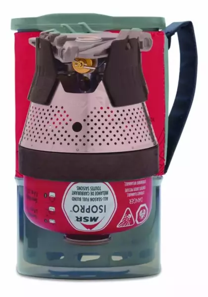 1Lの容量をもつ専用のポットに、バーナーヘッドとキャニスタースタンドをまとめて収納できるオールインワンストーブシステムです。